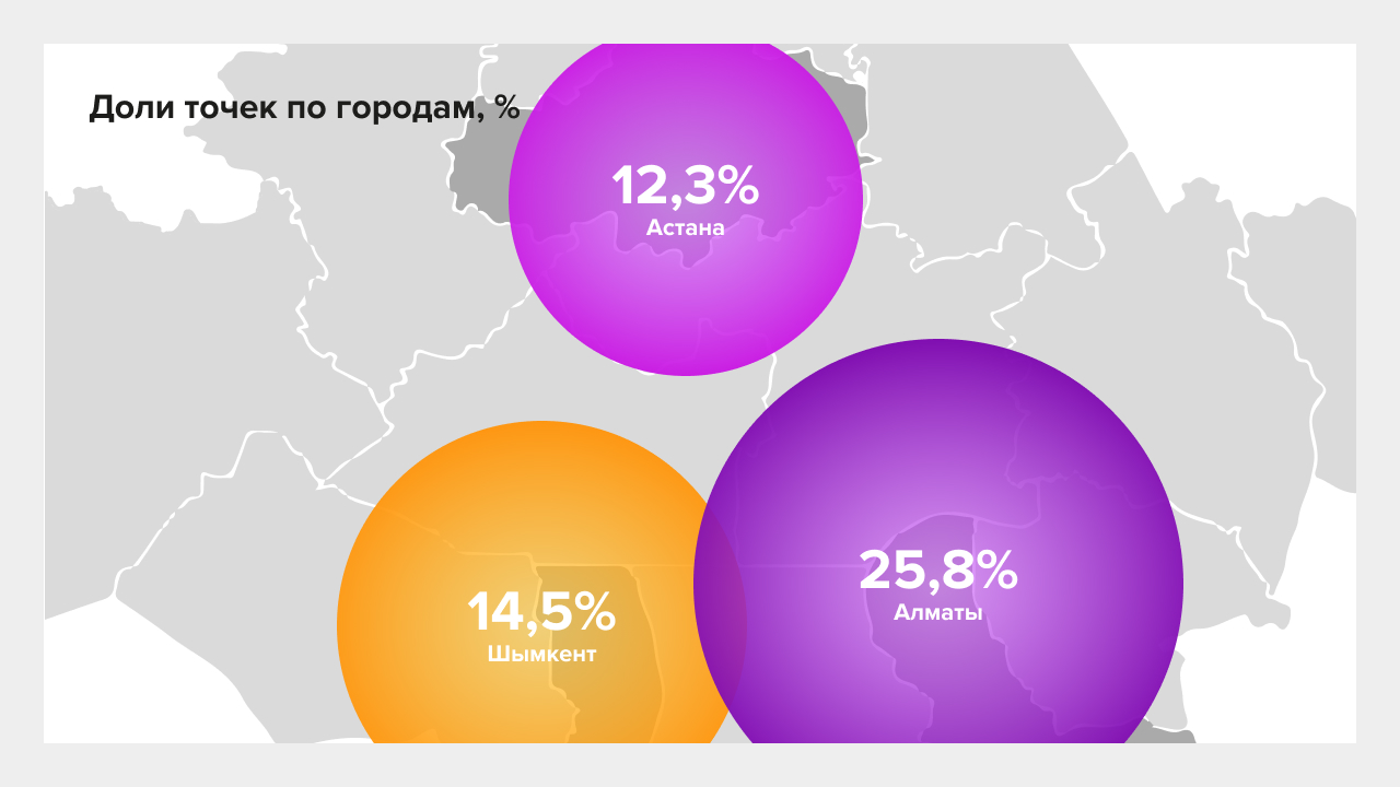 - Концентрация дистрибьюторов в Алматы и Астане.