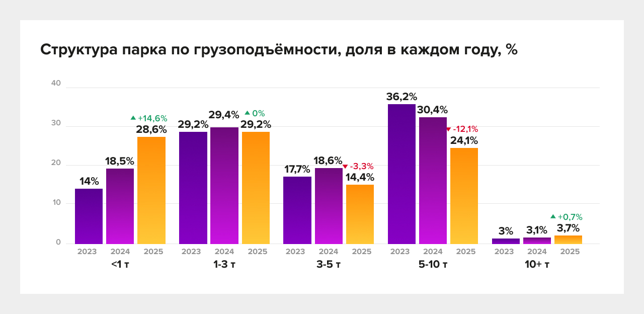 - парк заметно уходит в более лёгкий тоннаж;