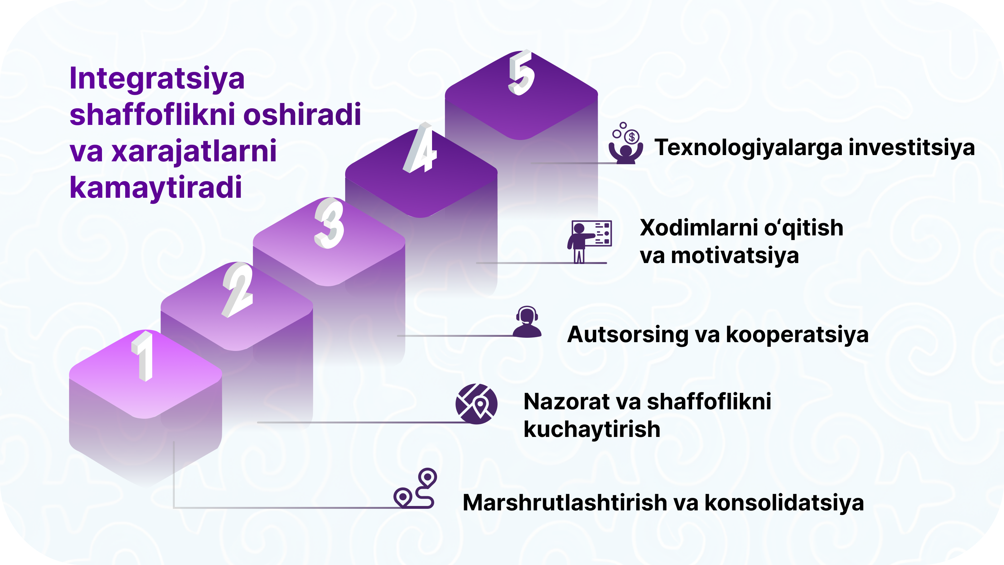 Zamonaviy ishlab chiqaruvchilar va distribyutorlar uchun asosiy tamoyil — butun zanjirni nazorat qilish, faqat yakuniy kilometrni emas. Shu sababli integratsiyalashgan model muhim, bunda importdan tortib yetkazib berishgacha bo‘lgan barcha bo‘g‘inlar yagona tizimga ulanadi.